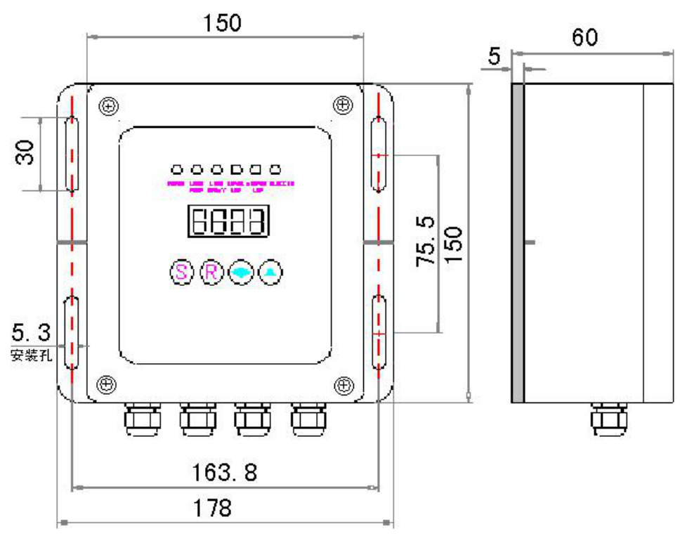 面板顯示窗口有四位數碼管,用于顯示系統工作狀態(tài)和編程。六個(gè)指示燈分別為:電源;油路