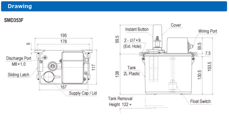 SMD-1型電動(dòng)潤滑泵是一種由微型電機驅動(dòng)的彈簧柱塞泵,適用于單線(xiàn)阻尼(SLR)系統,通過(guò)計量件將潤滑油按比例分配到各個(gè)潤滑點(diǎn),
